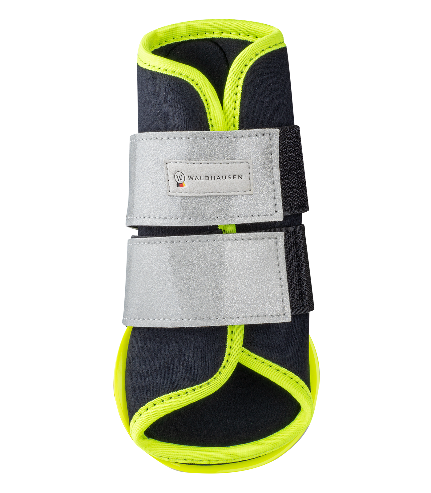 The sturdy moulded hard shell on the inside provides protection from knocks or brushing. With reflective touch tape fastening for good visibility in the dark. High quality and easycare soft material inside to securely enclose the horse"s leg and thus ensure all-round protection. Extra sturdy touch tape fasteners hold the boots securely on the leg. Pair.
