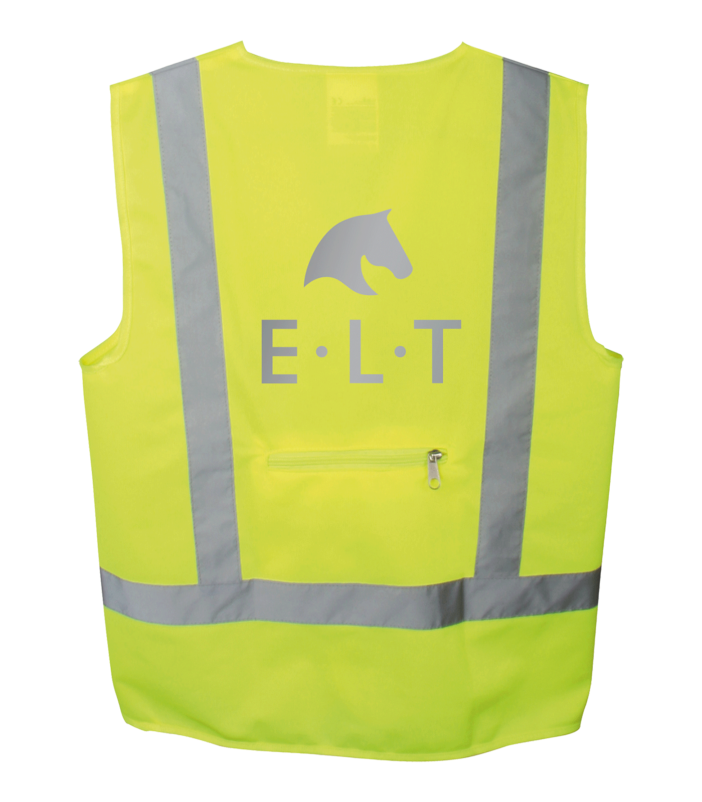 Greater safety from better visibility! With reflective stripes and decorative hi viz horse"s head print. Wearable over any outer clothing.