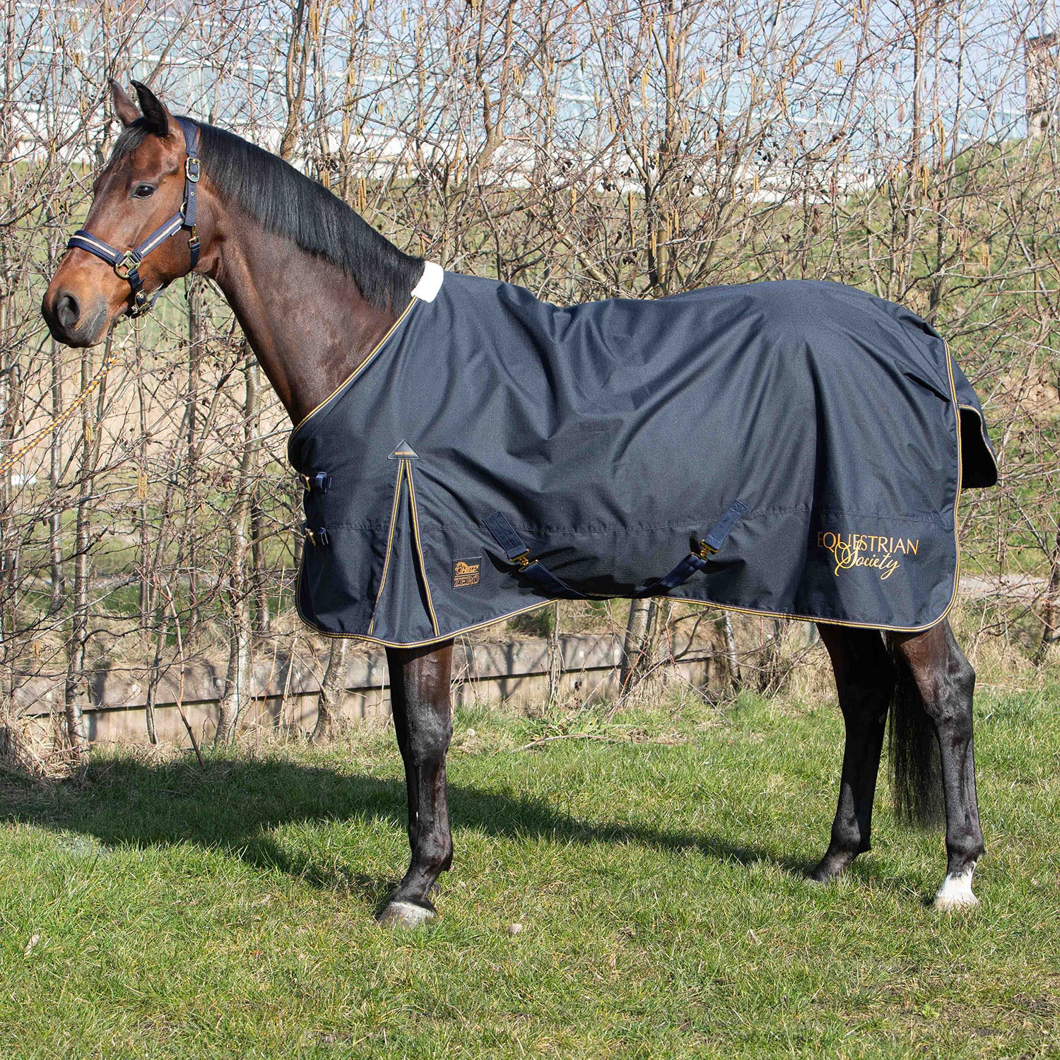Outdoordeken waterdicht en ademend met een zachte fleece voering. Naadloos op de rug en verder met een dubbele snelsluiting voor, staartflap, polyester gevoerd op de borst, kruissingels, getapede naden en afneembare elastische bilkoorden.