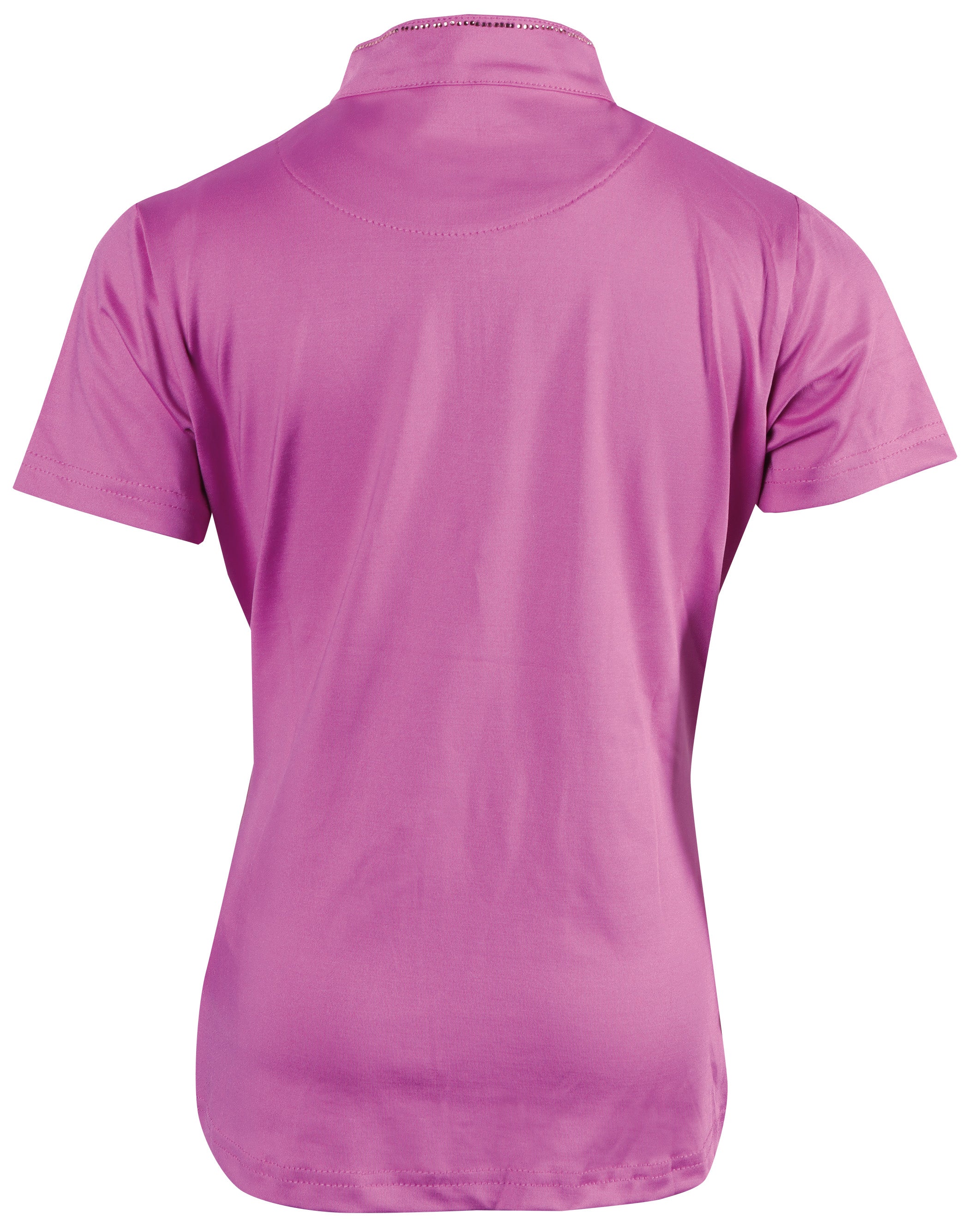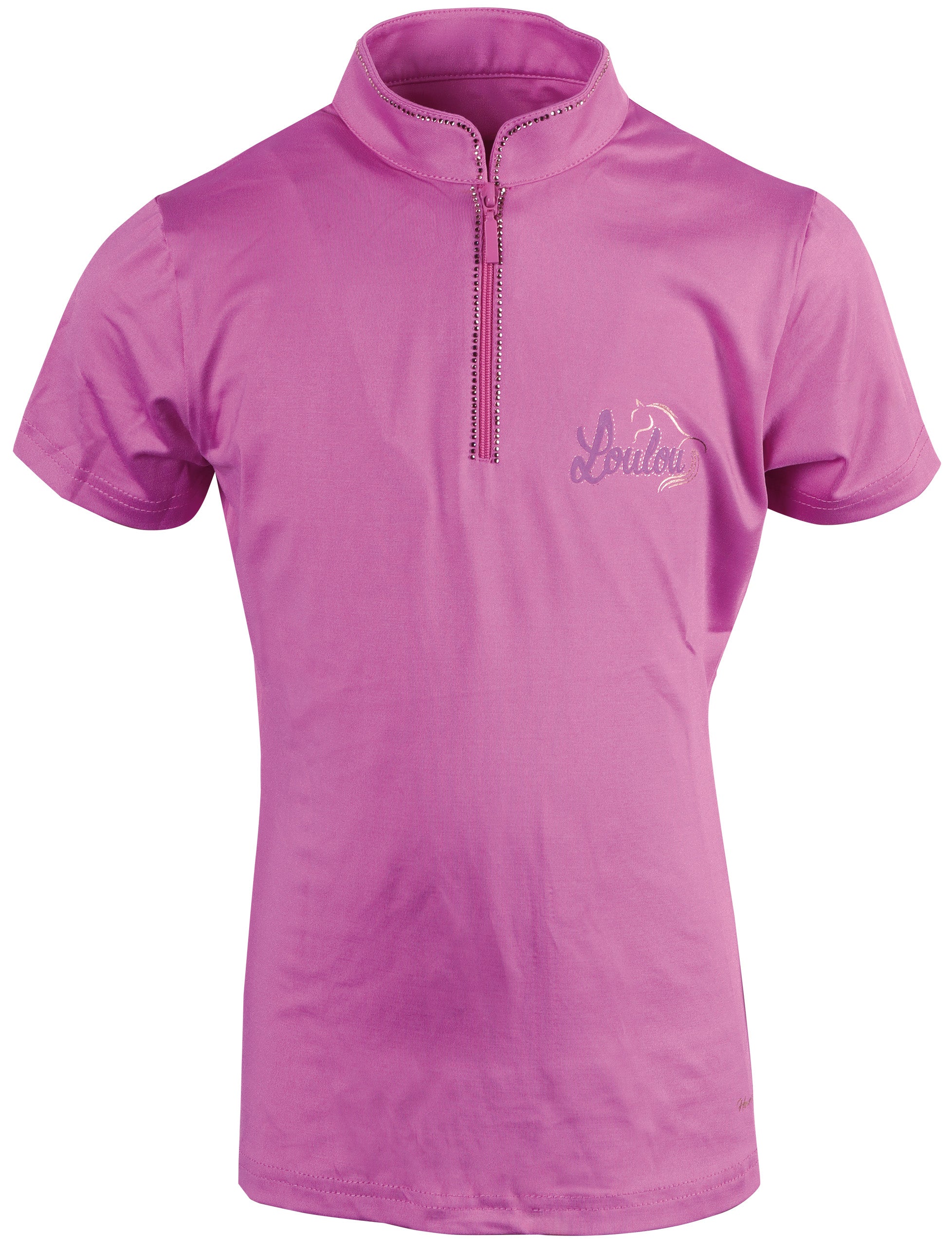 Shirt met korte mouwen, de opstaande kraag en de korte ritssluiting is omringt door kristallen, LouLou logo op de linkerborst.