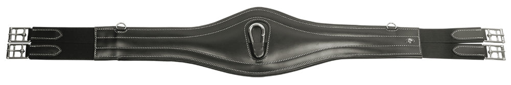 Lederen singel met rundlederen voering. Beide zijden met elastiek aan de singelstoten voor extra bewegingsvrijheid bij de buik.