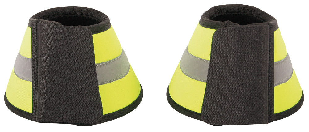 Springschoenen in fluoriserend gele stof met reflectie streep erop om je paard beter zichtbaar te maken in het donker.
