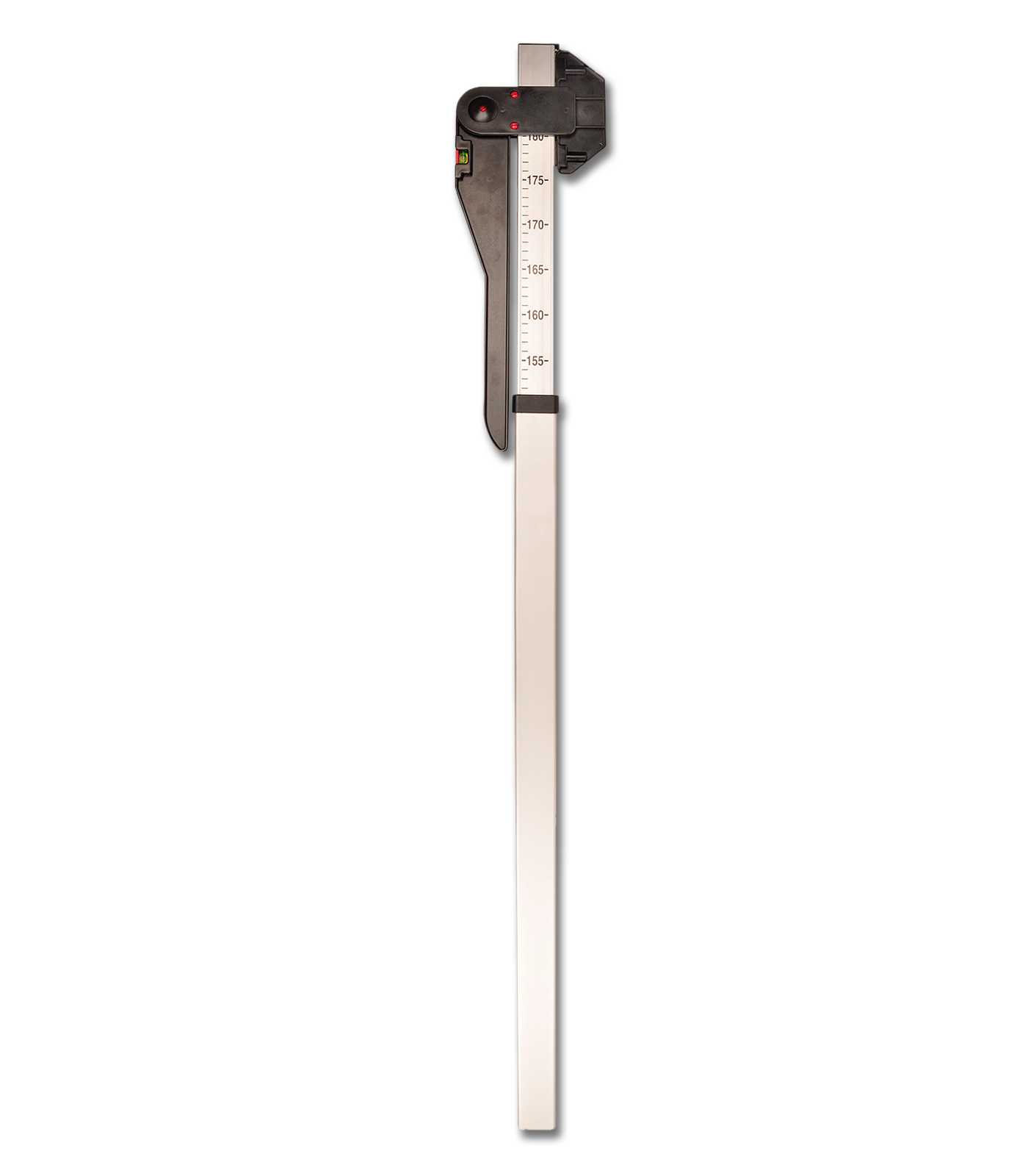 Solid floor measure, made of aluminium. Measuring range from 100-190 cm. Easy handling, integrated water level.