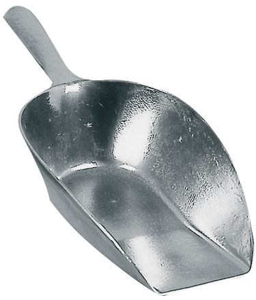 Stevige aluminium voerschep. Halfplat model.