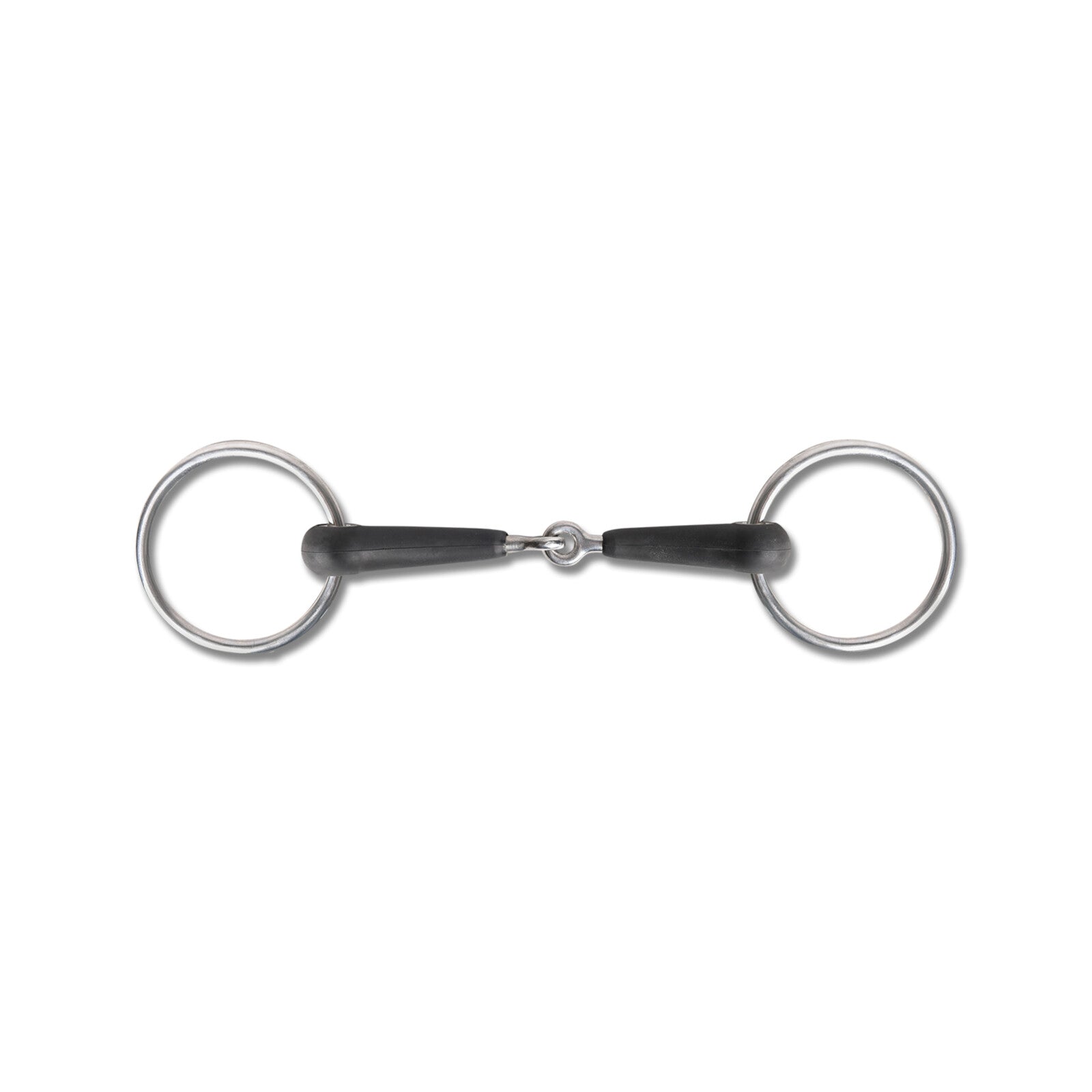 De nieuwe rubberen bitten van Waldhausen zijn gemaakt van hoogwaardig polyurethaan. Zorg ervoor dat u een rubberen bit alleen gebruikt bij paarden die veel speeksel produceren. Rubber is een zacht materiaal en is onderhevig aan natuurlijke slijtage in de mond van het paard. Slijtage kan toenemen als het bit te hoog in de mond van het paard wordt vastgemaakt en paarden kunnen het bit met hun achterste tanden kauwen. Daarom moet u ervoor zorgen dat het bit correct is aangepast.