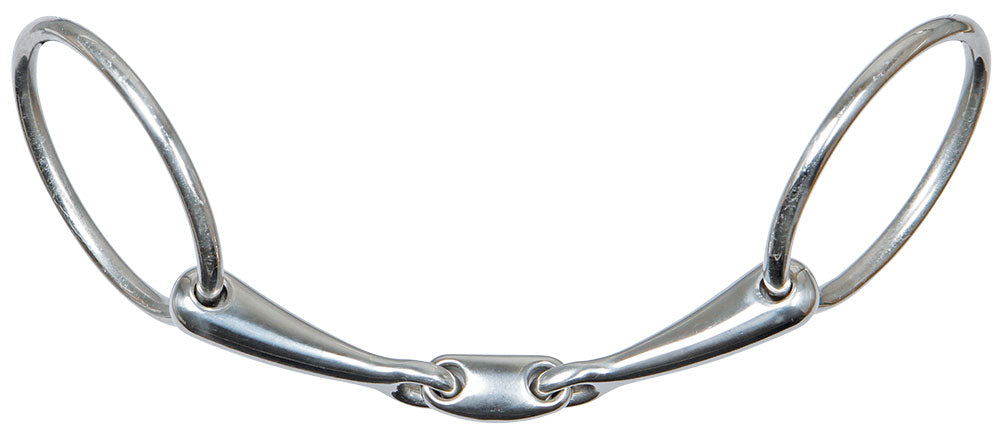 Bij minder druk op de teugels verandert het bit weer in een enkelgebroken bit. Dit kan bijdragen aan het leerproces van het paard om de druk zelf op te heffen.