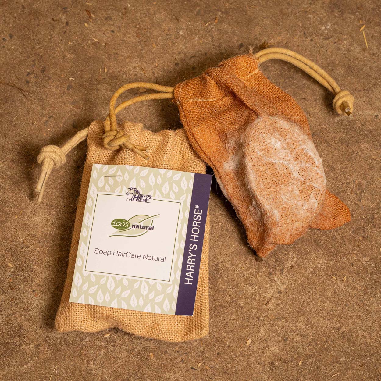 100% natuurlijke zeep. Speciaal voor de manen, staart en vacht. Inclusief handig zakje, waar ook mee gewassen kan worden.